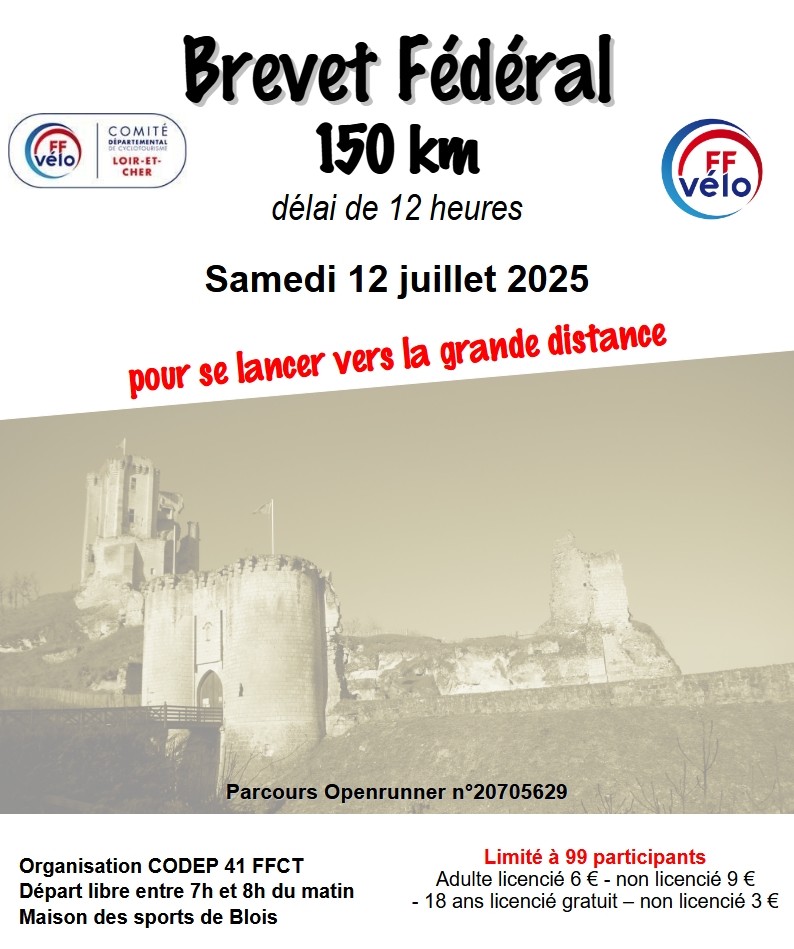 Le CODEP-41-FFCT vous propose pour 2025 six brevets : un brevet fédéral de 150 km, et cinq BRM.